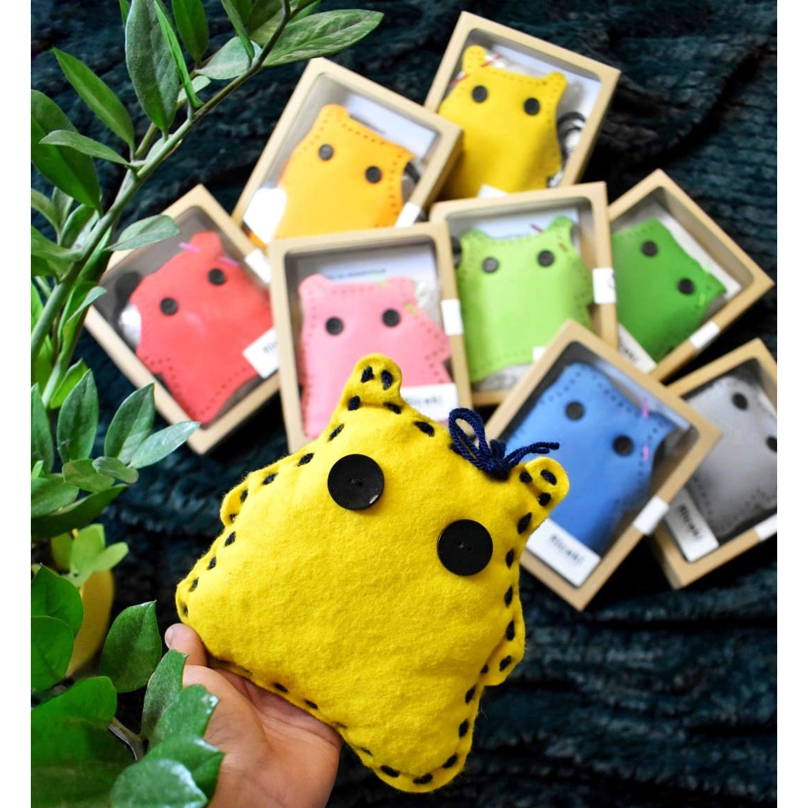 Each set comes with two pieces of fabric with pre-made holes along the edge, sewing wool, a safe-to-use plastic needle, filling and instructions.